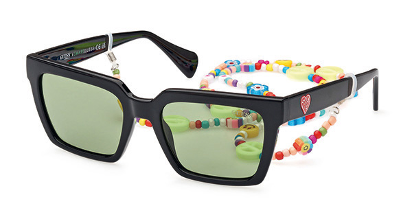 Occhiale da sole dal taglio audace declinato in nero lucido, per un look super-cool. Linee geometriche incontrano angoli netti in una montatura dall’animo fresco e dalla grande personalità. Il modello è siglato dall’esclusivo logo GUESS a forma di cuore rosso sulle aste ed è dotato di una giocosa catena personalizzata J Balvin.