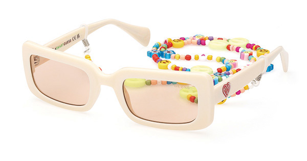 Streetstyle, fashion ed eclettico si fondono insieme in una rappresentazione estetica delle infinite emozioni espresse attraverso la forma di un accessorio intramontabile. Due  modelli, ognuno disponibile in un unico colore speciale: nero lucido e avorio con il logo GUESS a forma di cuore rosso lateralmente sulle aste.