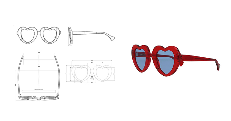 Per celebrarne il lancio, Saturnino Eyewear ha immaginato una montatura inconfondibile: due cuori rossi in acetato trasparente, totalmente Made In Italy, in acetato Mazzucchelli con lenti azzurre a contrasto, come il cielo d’estate. E a trasformare questa visione in realtà ci ha pensato iVision Tech, con il suo know-how manifatturiero, la cura nei dettagli, la passione per le cose fatte bene.