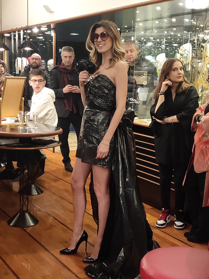 Momento clou della serata è stato l’ingresso di una modella che ha indossato un abito da sposa realizzato con sacchi della spazzatura, realizzato dagli allievi della scuola di Formazione Professionale ENAIP di Feltre e ideato da Adriano Lio, founder & owner di Liò Factory (al quale Vision.biz ha dedicato l’intervista di copertina del numero di Gennaio/Febbraio) che ha utilizzato questo e gli altri modelli della collezione per il calendario e la nuova campagna del marchio.
