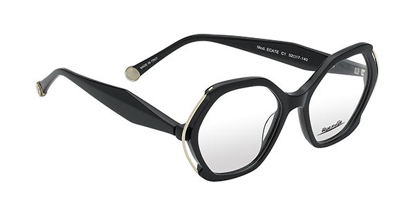 Anche il modello Ecate presenta una forma esagonale, ma più ampia e morbida nelle linee dei cerchi, con un sottile profilo in metallo che dona leggerezza al frontale. Qui la gamma cromatica gioca su striature verdi sfumate, marroni con un tocco glitter o nel classico nero.
