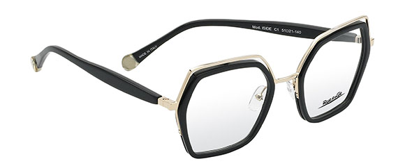 Il modello Iside, da vista, è un’interpretazione “retrò-futuristica” di una shapeesagonale, accentuata dai cerchi in acetato bordati dal ciliare in metallo. Disponibile nelle tonalità nero e argento, oro e marrone glitterato, bianco e nero con effetto marmorizzato, è un accessorio unico per un outfit che non passa inosservato.