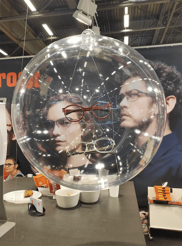 Frizzanti gli stand dove si confermano alcune tendenze di stile: il vintage contemporaneo – con una rivisitazione di costruzioni retrò e tributi alle icone del passato come Jackie O’ e Audrey Hepburn (leggi qui) – l’eleganza lineare, lo streetwear di design, l’acetato che domina sui materiali e consente uno studio del colore anche nelle trasparenze.