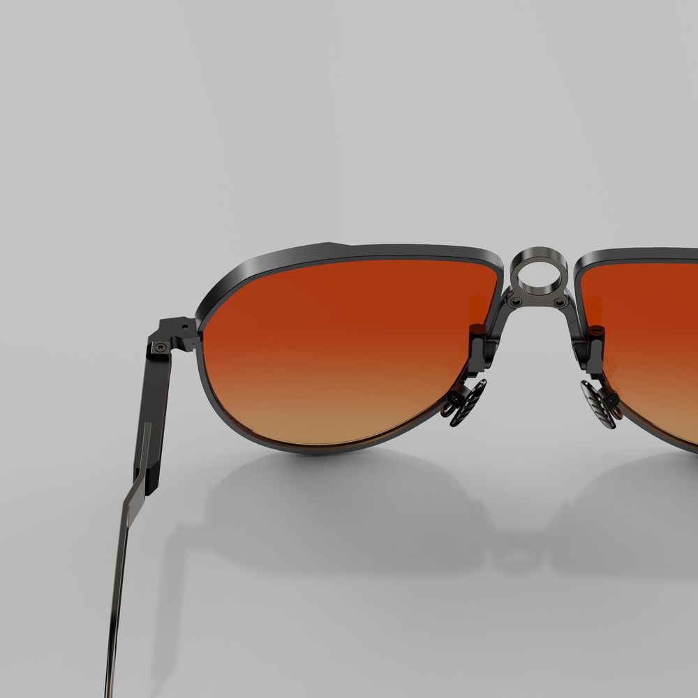 APEX 09 – occhiali da sole da aviatore proposti in tre varianti di colore: Galvanic / Brushed Rose Gold + Polished Rose Gold con lenti da sole specchiate Rose Gold; Galvanic / Brushed Gun Metal + Polished Antique Gun con lenti da sole Sunset Double Gradient e Galvanic / Brushed + Polished Light Gun con lenti da sole blu.
