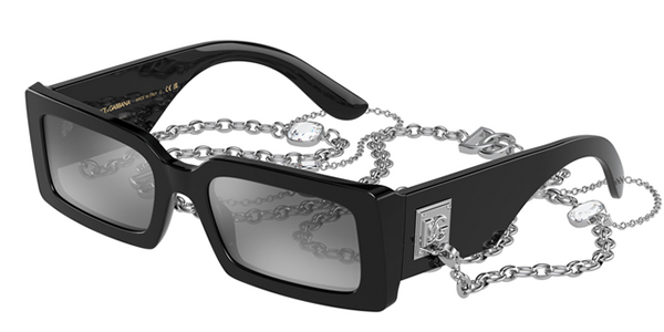 Stile innovativo e dettagli metallici contraddistinguono questi occhiali da sole dalla forma rettangolare e dalle linee decise. Il modello, realizzato in acetato, fa parte della nuova collezione DG Bella. Le aste sono personalizzate da una placca in metallo color argento oppure oro, con l’iconico monogramma DG Crossed applicato in rilievo. Oltre alla versione in nero, arricchita da una catena argentata removibile a cui poter attaccare gli auricolari wireless, questo modello è disponibile nelle colorazioni grigio metallizzato, blu e rosa.