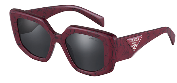Il nuovo modello da sole della collezione Prada Symbole presenta un ampio frontale oversize dal disegno irregolare. La montatura in acetato, femminile e contemporanea, è proposta con profili sfaccettati che costruiscono geometrie audaci. Le aste importanti sono arricchite da un’esclusiva placca in metallo che raffigura l’iconico logo Prada triangolo. Le proposte colore includono il Nero lucido, il Tartaruga ed esclusive nuance in Marmo Etrusco, Marmo Nero-Giallo e Marmo Baltico.