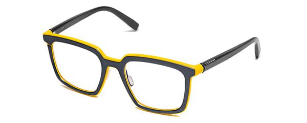 Lightbird OLB017C057. Il modello BUSINESSMAN della collezione Light_Matter è realizzato con un frontale bicolor in metallo e acetato. La combinazione giallo/grigio è distintiva del brand sia per gli occhiali sia per gli astucci