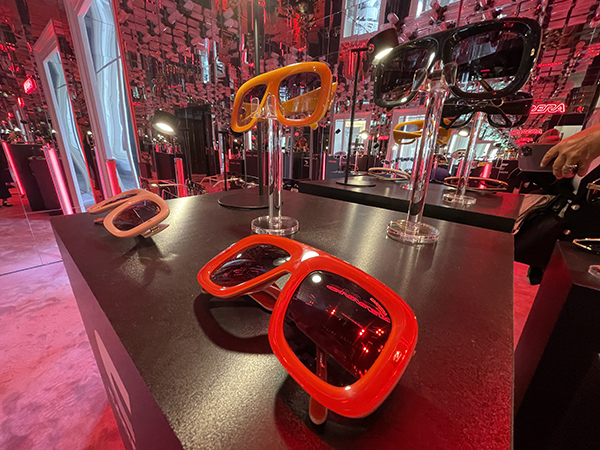 Tra i modelli di punta spiccano quelli di sfilata, caratterizzati da silhouette avvolgenti in rosso e nero, e il modello da vista accessoriato di due clip-on, uno Butterfly e uno più squadrato. Non mancano piccoli modelli in acetato con inserti metallici, dedicati a una clientela giovane e attenta alla moda.