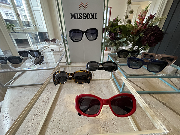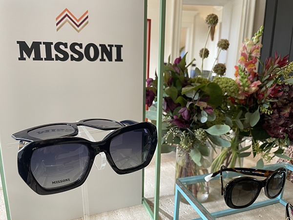 Missoni porta il suo celebre motivo geometrico e l’uso creativo dei tessuti nella collezione eyewear. Il brand gioca con texture uniche, inserendo porzioni di tessuto autentico nelle aste, un omaggio al proprio heritage.