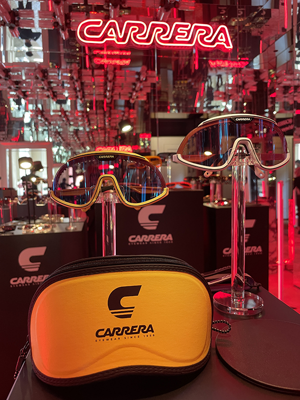 Il marchio di casa Safilo, sfoggia uno stile che oscilla tra il vintage e il contemporaneo. Per la donna, troviamo modelli dai colori accesi e dalle forme decise, con l’inconfondibile logo scolpito sulle aste e colorazioni vibranti che celebrano l’estate. I modelli più soft, come le mascherine in metallo rimless, mantengono dimensioni generose ma risultano estremamente leggeri e ariosi.