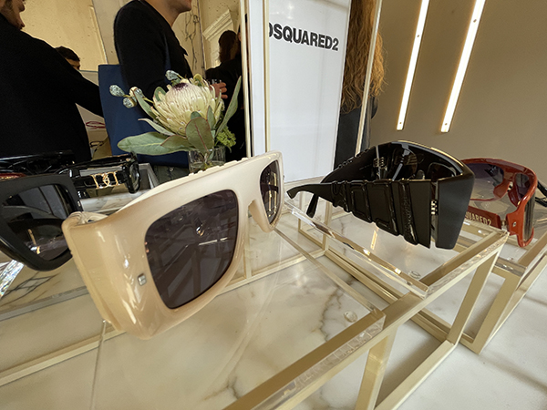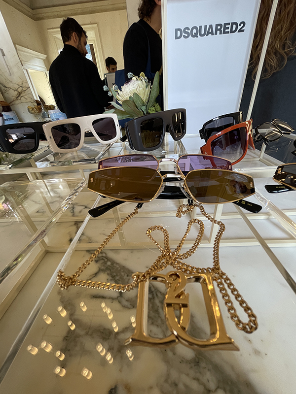 Dsquared2, brand dall’estetica contemporanea e provocatoria, porta in passerella occhiali dalle linee audaci e distintive. Le maschere di sfilata, grandi e avvolgenti ma sottili, sono caratterizzate dal logo SQUEEZE in evidenza sulle aste, un dettaglio che sottolinea l’identità forte del marchio. Accanto a questi modelli, la collezione introduce una selezione di occhiali “mini”, che segue la tendenza delle montature piccole e basse, impreziosite dal nuovo logo 2D.