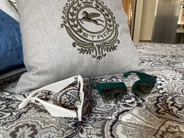 La collezione rende omaggio anche all’iconico motivo paisley, vero tratto distintivo della maison fin dal 1981. Questo pattern viene reinterpretato su montature in acetato, con aste sagomate e proposte in versioni monocromatiche, a tonalità sfumate o bicolori, conferendo agli occhiali un’eleganza tutta italiana, fedele alla tradizione artigianale del brand.