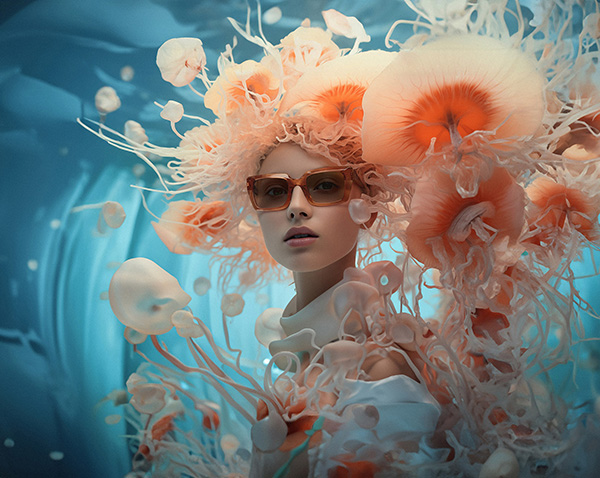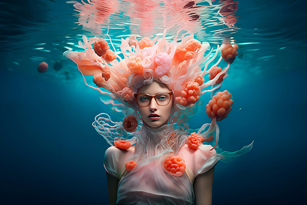 La nuova campagna invita a esplorare i misteri del mondo subacqueo riflettendo sulla convivenza della creatività umana con l’intelligenza artificiale per creare un mondo sorprendente. Questo universo surreale si riflette anche nei design della nuova collezione.