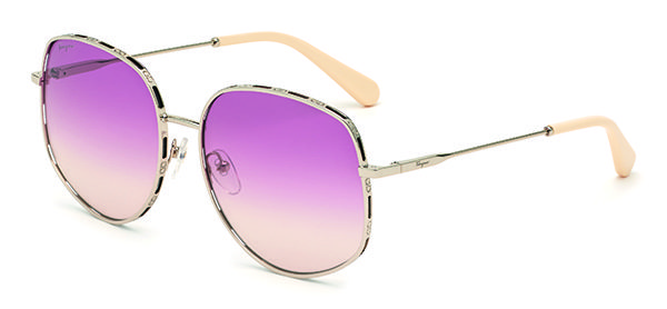 SF277S –Un modello da sole, dalla forma rettangolare modificata, contraddistinto da un’allure femminile e da una palette di lenti colorate a doppia e tripla sfumatura, esaltate dalle diverse tonalità di Gold dei cerchi in metallo. I profili sono valorizzati dal particolare Double Gancini intervallato da fori decorativi che fanno intravedere le lenti, mentre il logo Ferragamo inciso al laser sulle aste ultrasottili richiama in modo inequivocabile l’identità del brand. I terminali in acetato e le alette regolabili, a loro volta personalizzate dal tema Double Gancini, assicurano un comfort ottimale e una calzata perfetta.