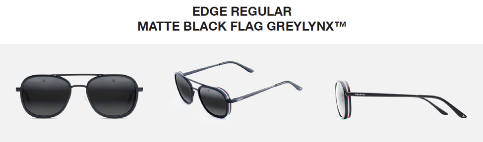 Gli occhiali presentano sul bordo il motivo iconico di Vuarnet: il richiamo alla bandiera francese sulla montatura. Francia e Stati Uniti condividono i colori rosso, bianco e blu delle loro bandiere.